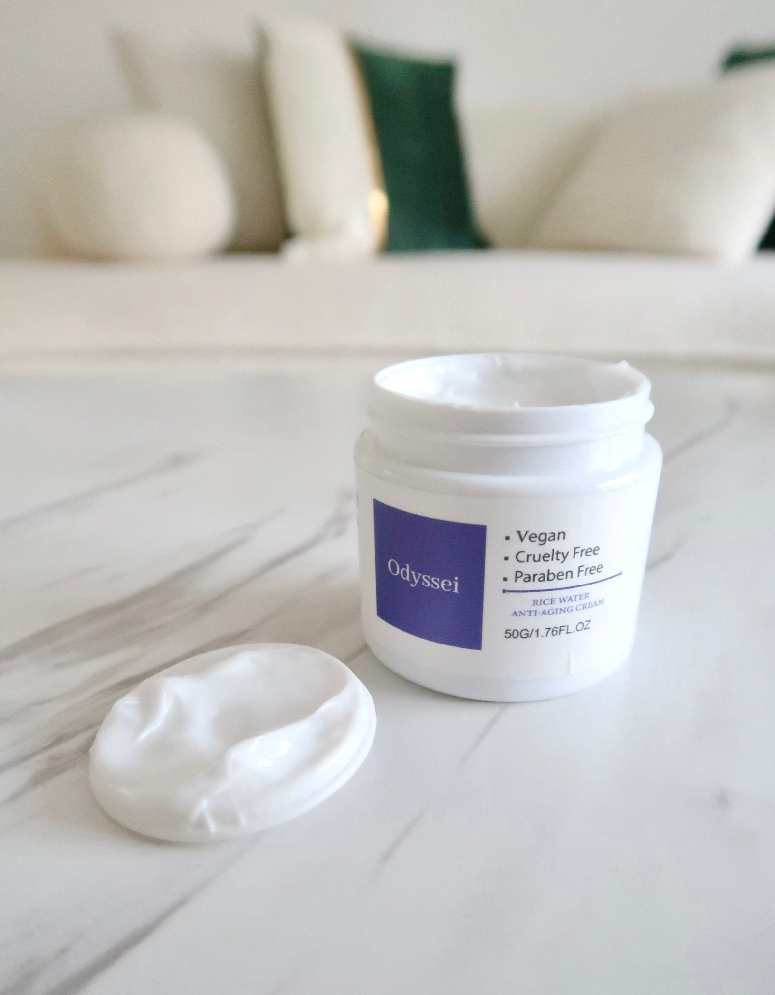 Our Rice Water Anti-Aging Cream consists of an advanced formula, infused with Vitamin E, Ginger Root Extract, and Hyaluronic Acid to minimize even early signs of aging by improving radiance, boosting collagen, and effectively conditioning the skin barrier.
